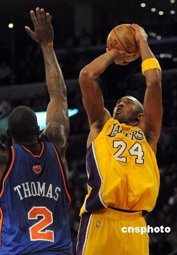 图:科比神勇率湖人逆转险胜纽约尼克斯