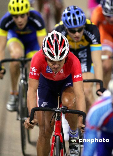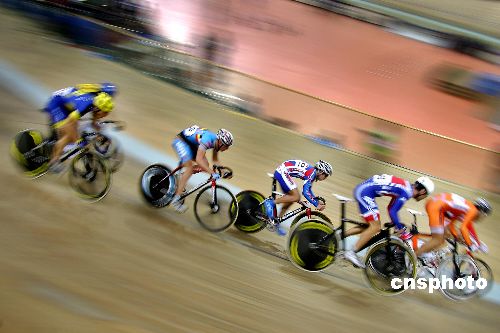 1月16日,为期三天的2008-2009北京国际自盟场地自行车世界杯赛在北京老山自行车馆拉开战幕。本次大赛是2008-2009赛季的第四站,场地世界杯赛共设男、女17个比赛项目,其中男子组9个、女子组8个,有10个小项为奥运会场地自行车正式比赛项目。中新社发 富田 摄