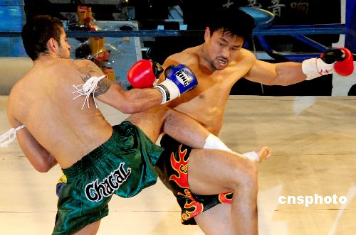 1月17日晚,在“武林风”第三届环球拳王争霸赛在河南洛阳举行。环球拳王争霸赛是河南电视台和日本富士电视台合作主办的一项大型中外武术交流活动。中新社发 高山岳 摄