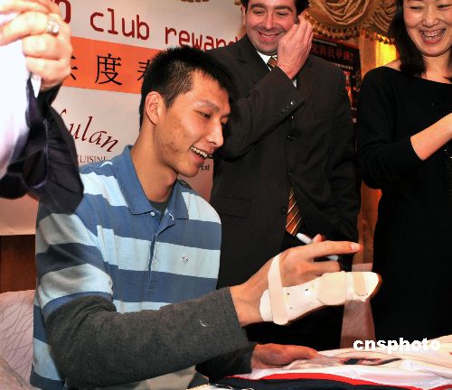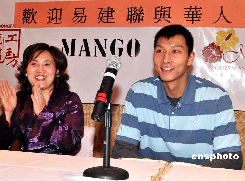 当地时间1月29日,在新泽西网队效力的易建联来到纽约,与纽约华人一起欢度春节。中新社发 龚文谟 摄