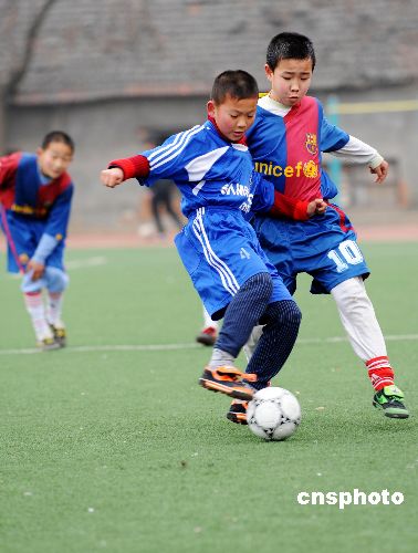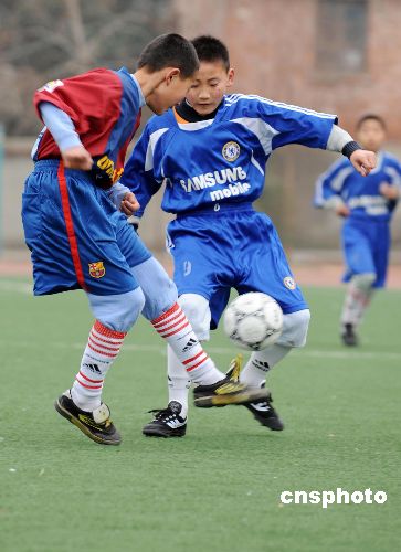 1月30日,参加第二十四届“新春杯”全国少年足球赛的少年足球队员们在绿茵场上进行激烈的角逐。当日上午,第二十四届“新春杯”全国少年足球赛在合肥市和平小学田径场上拉开帷幕。来自全国五省七市的共13支少年足球代表队参加了此次盛会。