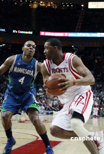 当地时间2月7日晚,休斯敦火箭在主场丰田中心迎战西北赛区倒数第二的森林狼队。结果火箭在上半场一度落后两位数,但凭借姚明和阿尔斯通等人在下半场的出色发挥,火箭最终以107-90击败森林狼避免了尴尬的连败。姚明全场18次投篮12次命中,得到火箭最高的30分6个篮板5次盖帽。中新社发 欧文 摄