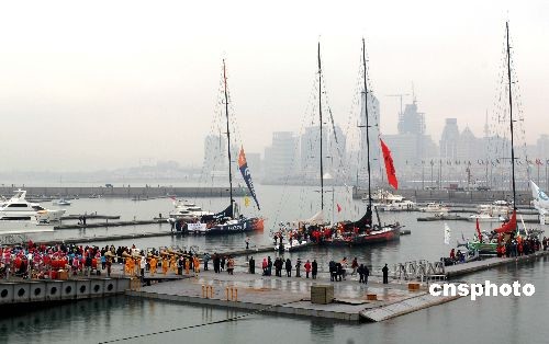 2月14日,2008-2009年沃尔沃环球帆船赛青岛站举行起航仪式。据悉,为了让民众充分领略沃尔沃环球帆船赛的魅力,青岛站组委会向公众免费开放奥帆中心,吸引了大量游客。截至当日,青岛奥帆中心共接待海内外观众四十余万人次。沃尔沃环球帆船赛是继奥帆赛、残奥帆赛后,青岛承办的又一项全球顶级专业帆船赛事,也是中国首次在冬季寒冷气候下在北方水域承办的帆船赛事。中新社发 卫卿 摄