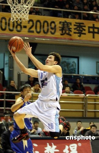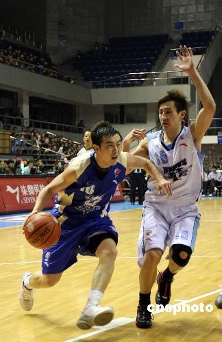 2月16日晚,CBA第35轮最后一场比赛中,北京金隅队主场迎战东莞马可波罗队,全场比赛东莞队防守松懈,外援进攻乏力,而北京队队员积极主动,比分一直领先,最终以21分的优势战胜对手,取得了进军季后赛关键的一场胜利。中新社发 王韶骅 摄