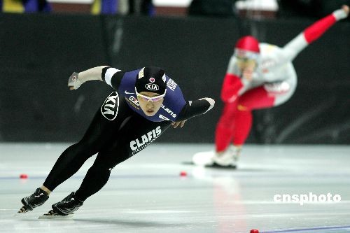 2月19日,第24届大学生冬季运动会进入第二天的比赛,速度滑冰女子500米项目决出本届大冬会首枚金牌,韩国选手李相花(左)以38秒16的成绩获得第一名,同时刷新了由她自己保持的大冬会记录,中国选手于静位列第二,另一名中国选手张爽取得铜牌。中新社发 富田 摄