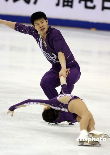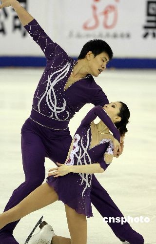 在第24届世界大学生冬季运动会花样滑冰双人滑比赛中,张丹、张昊以195.32的总成绩夺得冠军,取得三连冠。中新社发 王韶骅 摄