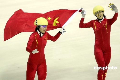 2月23日,第24届大冬会在哈尔滨继续进行。在短道速滑女子1000米的决赛中,中国选手刘秋宏,以1分31秒657的成绩勇夺冠军。她的队友周洋落后0.022秒获得银牌。中新社发 富田 摄
