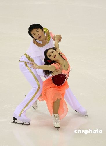 2月23日晚,在大冬会花样滑冰冰舞比赛中,中国三对参赛组合都不同程度地出现失误,黄欣彤、郑汛成绩名列第七位。中新社发 王韶骅 摄