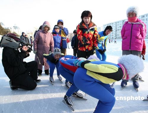 2月24日,中国女子速滑运动员、世界冠军、总政文职少将叶乔波与中央电视台体育频道《我的奥林匹克》特别节目摄制组、中国奥委会,在黑龙江省黑河市联合录制6集《中国冰雪记忆》大型纪录片。《中国冰雪记忆》是继2008《我的奥林匹克》之后,集中反映在冬季奥林匹克运动赛场上获得辉煌成绩的中国运动员成长经历的又一部大型纪录片。 中新社发 邱齐龙 摄