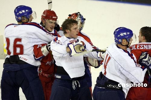 2月25日晚最后一场男子冰球小组赛由俄罗斯对阵斯洛伐克,整场比赛火爆激烈,最终俄罗斯队9:3取胜,保持小组不败进入半决赛。中新社发 王韶骅 摄