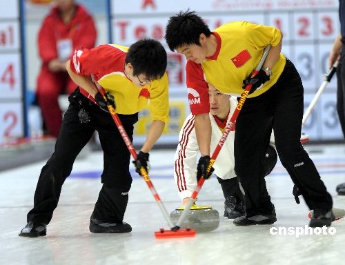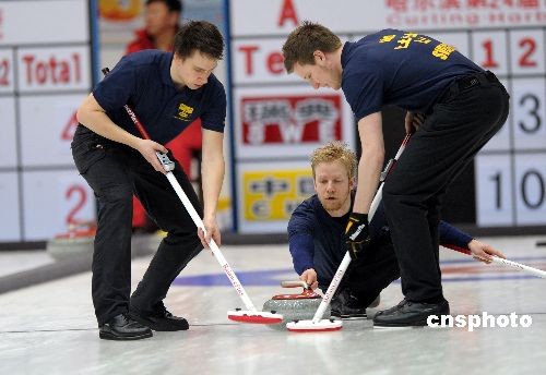 2月26日,大冬会男子冰壶半决赛在黑龙江省冰上基地冰壶馆举行,中国队7:8惜败于瑞典队。中新社发 姚庭山 摄