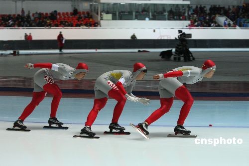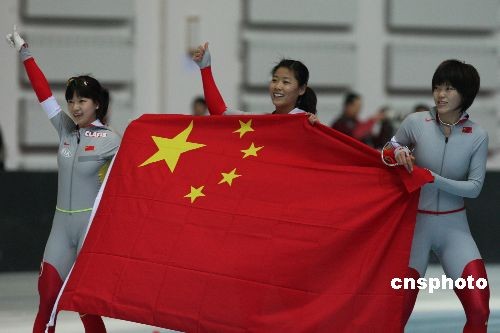 2月26日,大冬会速度滑冰女子团体追逐赛,中国队以3分07秒38获得冠军。中新社发 王忠言 摄