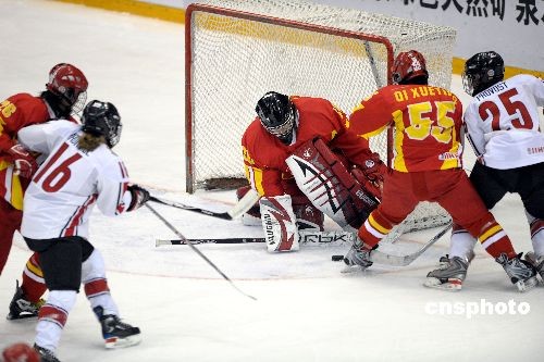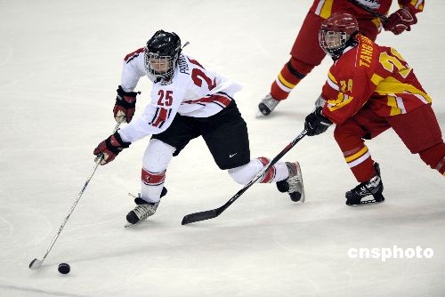 2月27日晚,在哈尔滨冰球馆,大冬会女冰中国与加拿大冠军之争,中国队经过防守之战1:3负于加拿大队,最终大冬会女冰金牌由加拿大队获得。中国队以获得银牌画上圆满句号。中新社发 姚庭山 摄