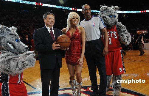 当地时间3月8日晚,美国大纽约地区“2009中华之夜”晚会在NBA新泽西网队主场举行,在NBA赛场吹出一阵“中国风”,众多美国球迷在观看球赛之余,也饱览了一场中华文化盛宴。图为中国驻纽约总领事彭克玉在演出现场。中新社发 魏晞 摄