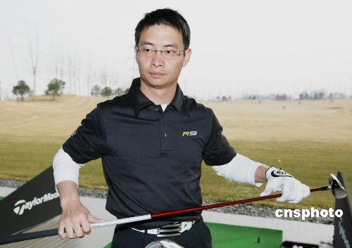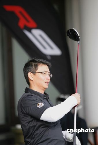 3月10日,体操奥运冠军李小双亲临某高尔夫新品发布会现场并体验高尔夫。中新社发 沈晨 摄