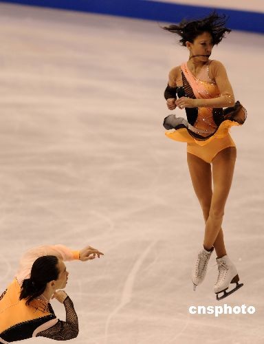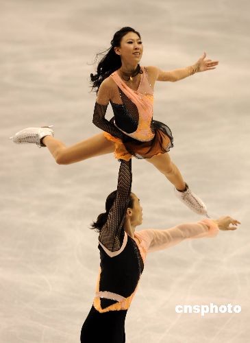 当地时间3月24日晚,2009年花样滑冰世界锦标赛在洛杉矶正式开幕。在当天晚上举行的双人滑短节目比赛中,中国选手、2006年世锦赛冠军庞清和佟健得到65.18分,排名第五。卫冕冠军德国组合萨维琴科和索尔科维名列第一。25日晚将举行双人自由滑比赛,根据两项总成绩决出名次。图为庞清和佟健在比赛中。中新社发 张炜 摄