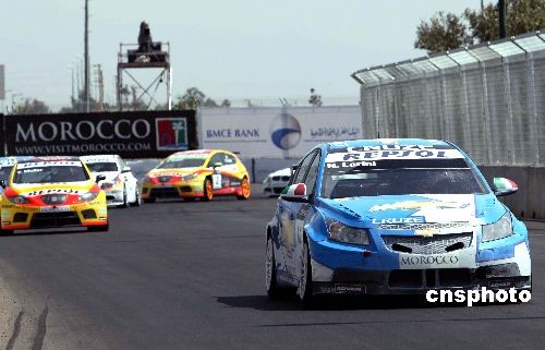 在5月3日进行的2009世界房车锦标赛(WTCC)第三站——摩洛哥马拉喀什(Marrakech)站中,雪佛兰车队展现出非凡的实力。车手罗伯·胡夫(Rob Huff)和尼科拉·拉里尼(Nicola Larini)驾驶的雪佛兰科鲁兹力压群雄分别赢得了第一和第二回合比赛胜利,从而使雪佛兰车队首次包揽两回合比赛的冠军,完成了历史性的突破。图为尼科拉·拉里尼在比赛中。中新社发 赵振清 摄