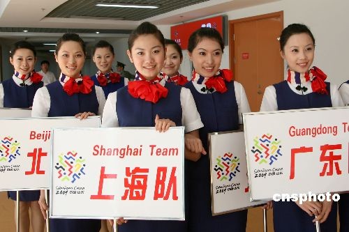 全运会测试赛5月13日即将在山东省济南市举行。5月8日,担任开幕式引导方队的礼仪志愿者加紧排练,以最美的微笑迎接全运健儿。中新社发 岽东 摄
