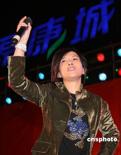 10月23日晚,新近复出的歌手潘美辰携自己谱曲、何厚华做词的新歌《最冷的夏天》等亮相河南洛阳,为当日在洛阳新区中原康城开幕的2006年“全国医药保健品博览会暨美容美发化妆品采购节”助兴。中新社发 张晓理 摄