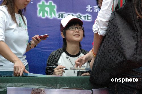 11月18日下午,周笔畅在福州举行首张专辑《谁动了我的琴弦》签售会。现场来了许多“笔迷”,他们都带来了“笔笔”首张专辑前来索要签名。中新社发 张 斌 摄