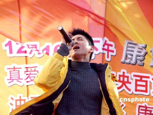 12月16日下午当年小虎队中的“霹雳虎”吴奇隆出现在洛阳中央百货商厦,为某品牌羽绒服做宣传。据悉这是自报传吴奇隆本月13日和云南姑娘马娅舒在昆明登记结婚后的首次商业活动。中新社发 巩卫东 摄