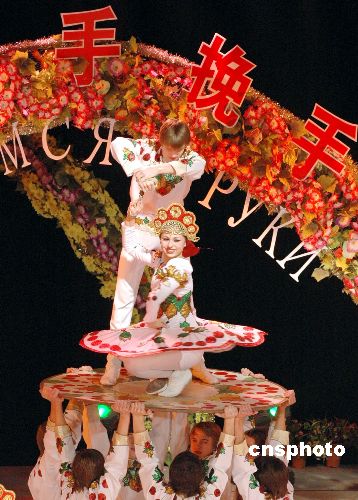 12月19日,中俄边城文艺工作者《手挽手》在黑龙江黑河同台献艺,欢庆“中国俄罗斯年”闭幕,迎接“俄罗斯中国年”启动。中新社发 邱齐龙 摄