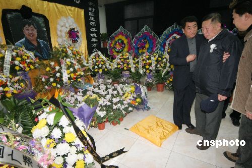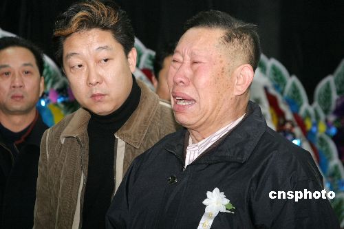 12月21日,广电总局中国广播艺术团说唱团为马季设立灵堂。 北京人艺老艺术家韩善续痛哭失声悼念马季。中新社发 吴芒子 摄