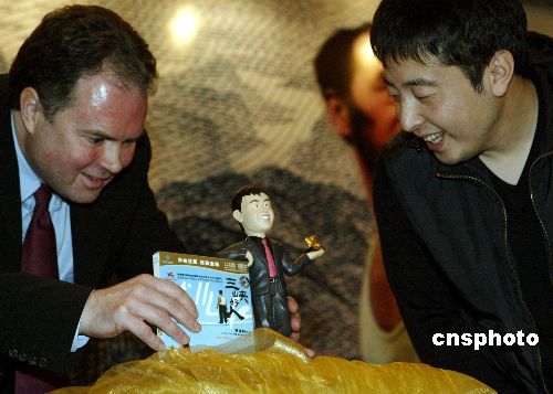 | 1月11日,中国影片《三峡好人》在北京举行了正版DVD上市新闻发布会,该片在威尼斯擒获“金狮”之后,又在中国内地各大院线上映,引起了影迷们的热切关注。而该片正版音像制品也紧随其后,“火热出炉”。在发布会上,发行商中录华纳家庭娱乐有限公司,导演贾樟柯、策划刘小东以及主演韩三明、赵涛等人都出席了新闻发布会,为正版DVD上市宣传助阵。图为中录华纳家庭娱乐有限公司人士在发布会上向贾樟柯赠送首张该片正版DVD。中新社发 钱兴强 摄