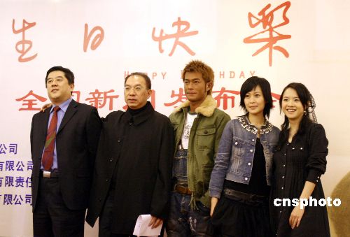 2007年1月14日,《生日快乐》在北京举办首映发布,导演马楚成偕同演员刘若英,古天乐,曾宝仪一起为《生日快乐》庆生。因为马导的两部电影《生日快乐》《男才女貌》同时上档,马导表示《男才女貌》比较适合男生看,而《生日快乐》比较适合女生看。巧的是刘若英也有一部电影《心中有鬼》即将在情人节档上映。中新社发 一可 摄