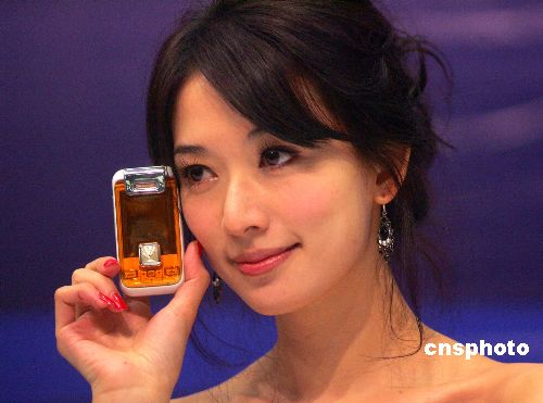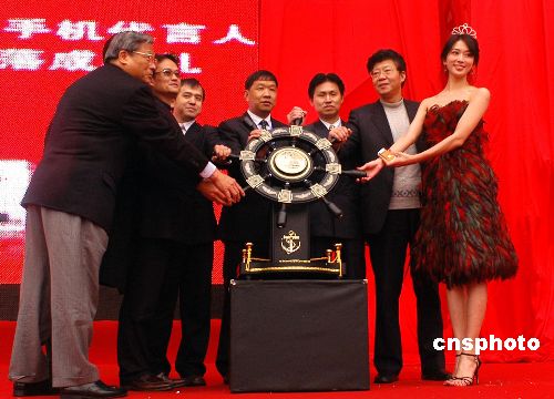 一月十八日,台湾名模林志玲在重庆出席签约仪式,担任长虹手机代言人。中新社发 李化 摄