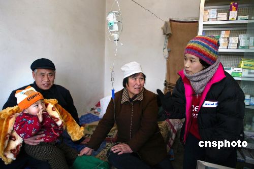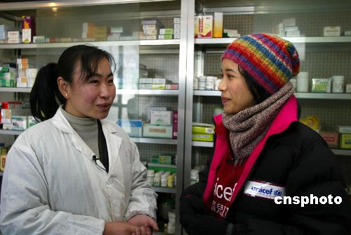 1月19日至26日,联合国儿童基金会亲善大使莫文蔚在甘肃展开“爱”意满甘肃亲善探访之旅。图为莫文蔚小姐在静宁山区探访当地女村医。晚些时候莫文蔚还将前往山区小学校看望学生,并给他们带去学习文具等爱心礼物。中新社发 杨可佳 摄