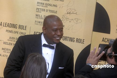 美国洛杉矶当地时间二月二十五日,七十九届奥斯卡颁奖典礼在好莱坞举行, 弗雷斯特·惠特克凭借《末代独裁》中的精彩演出获得最佳男主角。中新社发 贾国荣 摄