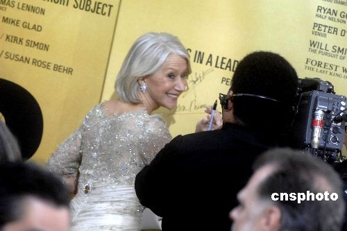 美国洛杉矶当地时间二月二十五日,七十九届奥斯卡奖尘埃落定,电影《女王》扮演者海伦·米伦技压群芳夺得最佳女主角奖。中新社发 贾国荣 摄