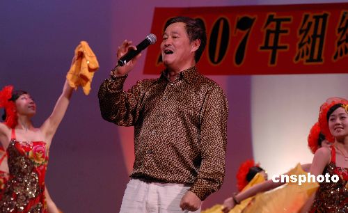 由著名笑星赵本山带团的“刘老根大舞台”表演团当地时间三月二日晚在纽约市皇后学院寇登礼堂为大纽约地区的华侨观众献上了一台精彩的贺春节目。长达两个多小时的演出取得巨大成功成功,全场两千多名观众不时为赵本山和东北“二人转”精湛的表演报以热烈的掌声。图为赵本山精彩的表演。中新社发 龚文谟 摄