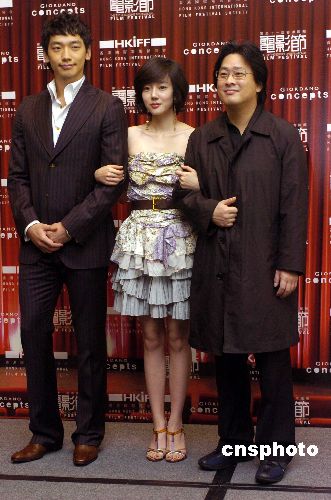 3月18日,第三十一届香港国际电影节开幕电影《再造人之恋》的男女主角郑智熏(Rain)、朴秀晶与导演朴赞郁携手出席记者会,为电影宣传造势。该部电影是郑智熏(Rain)首次踏足大银幕之作。中新社发 邓庆乐 摄