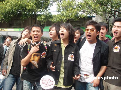 3月28日,男生版的“超级女声”——“快乐男声”长沙赛区正式启动,开始现场报名。截至中午12点,近五百名怀抱着音乐梦想、来自中国各地的音乐男孩完成报名手续。中新社发 邓霞 摄