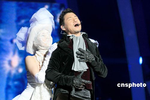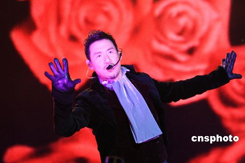 4月7日晚,张学友在南京五台山体育场激情演唱。当日,“时光澔韵·张学友好久不见2007南京演唱会”在南京五台山体育场上演。体育场3万余座位爆满,粉丝们喝彩连连。中新社发 韩华 摄