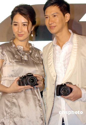 4月17日,香港影视红星张家辉、关咏荷在香港出席奥林巴斯数码相机新产品发布会。两人破天荒以夫妻档为该品牌推出的新型号单镜反光数码相机宣传。中新社发 邓庆乐 摄