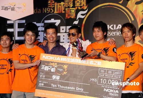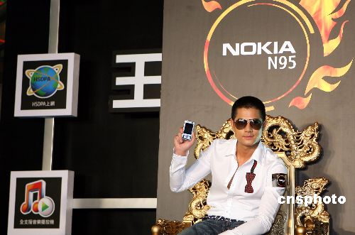 五月五日晚,著名明星郭富城在香港时代广场参加诺基亚新款手机的推介活动。中新社发 武仲林 摄