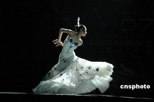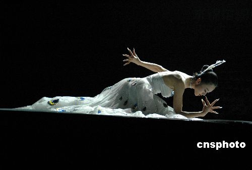 5月5日晚,“多彩贵州”舞蹈大赛,贵阳乌当赛区决赛后,著名表演艺术家杨丽萍表演了她的代表作之一的《雀之灵》舞蹈。中新社发 熊德成 摄