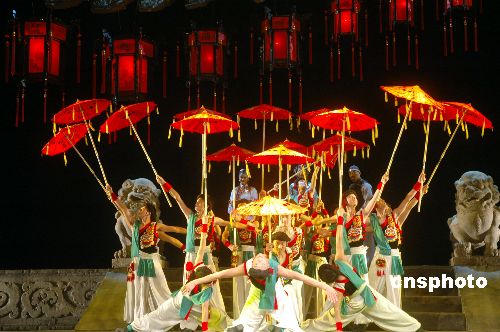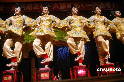 2007年5月12日,舞剧《一把酸枣》演出中。当晚,中国首部反映晋商生活的大型舞剧《一把酸枣》在海口人大会堂上演。《一把酸枣》由创作舞蹈《千手观音》的总政歌舞团团长张继钢编导。据张继钢称《一把酸枣》是他近年代表作。中新社发 善平 摄