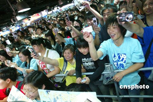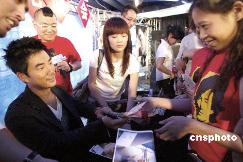 五月十三日,任贤齐在北京王府井FAB唱片行为到场歌迷签售新专辑《如果没有你》。任贤齐加盟百代唱片的第二张专辑《如果没有你》横空出世以来,任贤齐一直忙于唱片宣传,此次签售活动吸引了大批的北京歌迷。中新社发 杜洋 摄