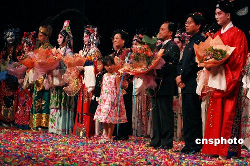 2007年5月13日,《牡丹亭》谢幕台前围满观众。当天青春版《牡丹亭》百场纪念演出在北京北展剧场落幕。三天来,《牡丹亭》场场爆满,一票难求。青春版《牡丹亭》由著名华语作家白先勇担任总制作人和艺术总监,江苏省苏州昆剧院青年演员“小兰花”担纲主演。中新社发 鲁谷 摄