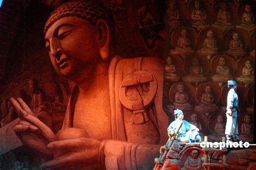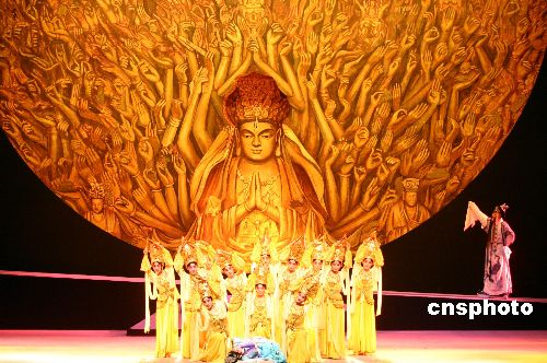 5月23日晚,重庆市京剧团再次上演以世界文化遗产“大足石刻”为创作素材,雕琢出的新编历史京剧版的《大足》,再现了世界文化遗产辉煌。中新社发 郭晋嘉 摄
