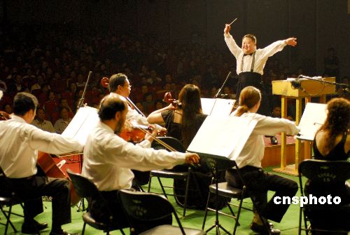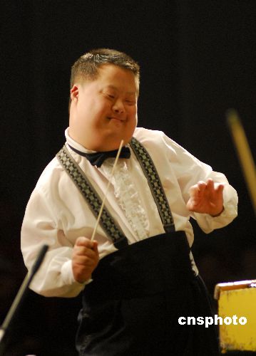 6月21日晚,由舟舟担任指挥的《让世界充满爱》大型交响乐演唱会在山西长治市潞州剧院举行。憨态可掬的舟舟先后指挥了《北京喜讯到边塞》、《卡门序曲》、《烛光里的妈妈》等经典名曲,赢得了观众持续不断的掌声。中新社发 姚林 摄