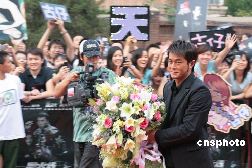 2007年7月25日,影片《导火线》在北京举行盛大首映礼。首映礼上,古天乐和甄子丹的影迷占据大多数,当二人出现在红地毯时受到影迷的热烈欢迎。而一向以硬汉及反派形象示人的邹兆龙则耍起宝来,连摆搞笑姿势给记者拍照。中新社发 一可 摄