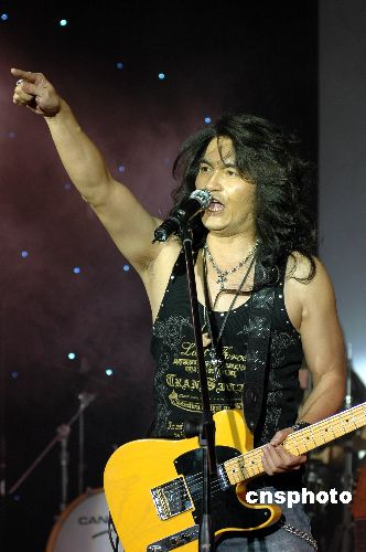 8月23日晚,迪克牛仔在北京为其首张全原创国语天碟《风飞沙》举行发片会和歌会,被两位身材火辣的“牛仔女郎”簇拥着,大玩性感。当晚,迪克牛仔演唱了新专辑主打歌《风飞沙》、《影子》、《老爹》和多首经典老歌,现场气氛火爆。中新社发 李学仕 摄