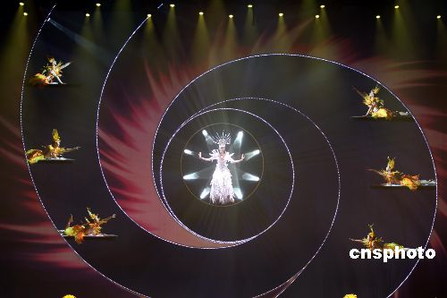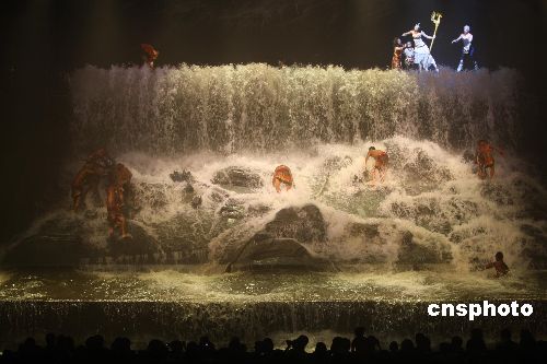8月,由华侨城集团投资两亿元精心打造的原创精品大秀《金面王朝》在北京欢乐谷正式对外公演。该剧集声、光、电、舞蹈、音乐、杂技、服饰表演等多种艺术手段于一体,以“秀”的表现概念,从战争、月下、桑田等八个章节讲述了金面女王与蓝面之间的爱情以及以身祭天,保卫家园的大爱精神。中新社发 杜洋 摄