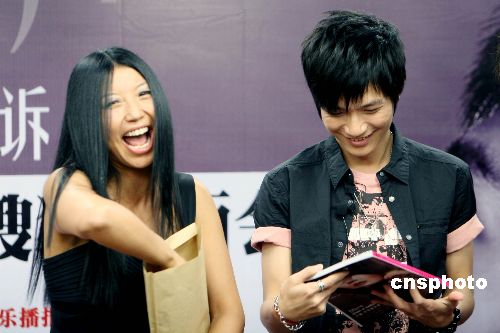 9月27日下午14:00,快男冠军陈楚生做客搜狐网站,举行了首张EP单曲“有没有人告诉你”的见面会,畅谈他的音乐和生活。杨二车娜姆惊喜露面并送上祝福。中新社发 袁方 摄