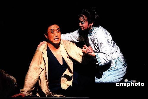 由台湾辜公亮文教基金会与台北新剧团合作推出的新编京剧《原野》十月六日将在北京保利剧院首演。台湾海基会已故董事长辜振甫的长女辜怀群和次子辜成允五日齐聚北京共同推介该剧。台湾京剧名角李宝春(图中饰仇虎者)和台湾京剧小花旦黄宇琳(图中饰金子着)领衔演出。中新社发 徐长安 摄
